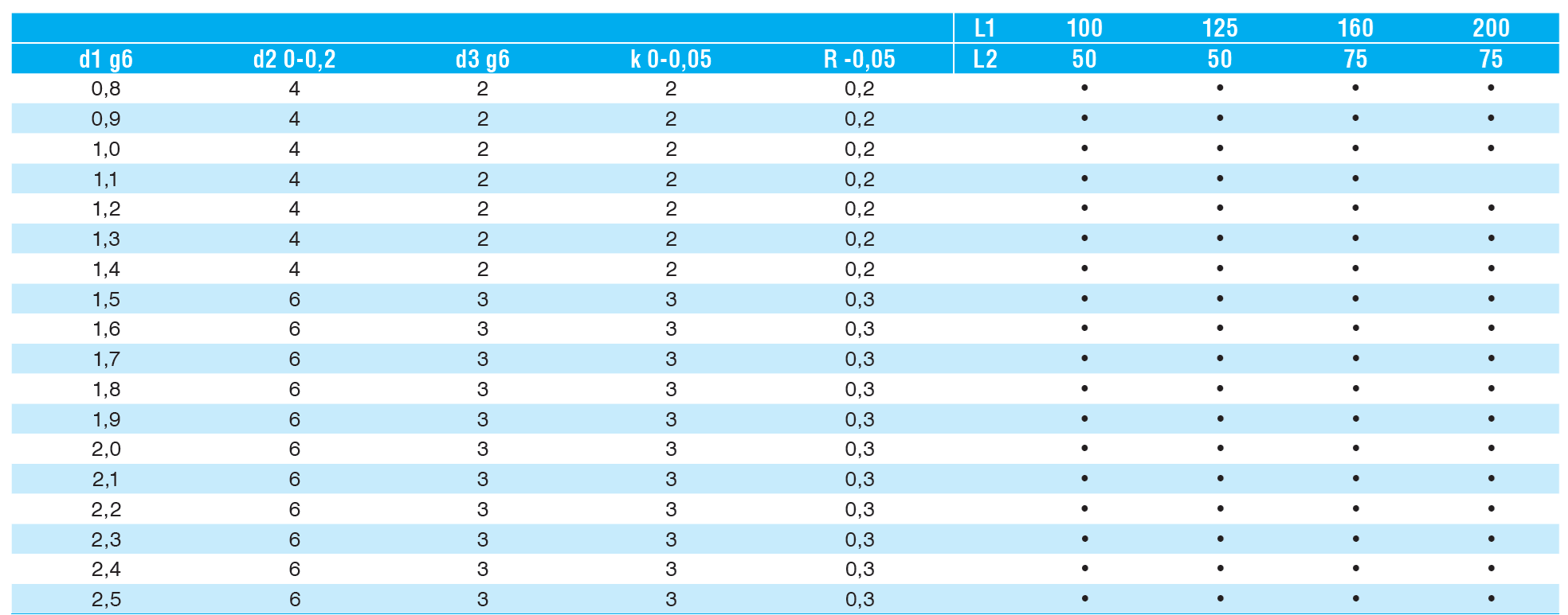 Sworzeń wyrzutnika, Din 1530, Typ Ch – Hartowane
